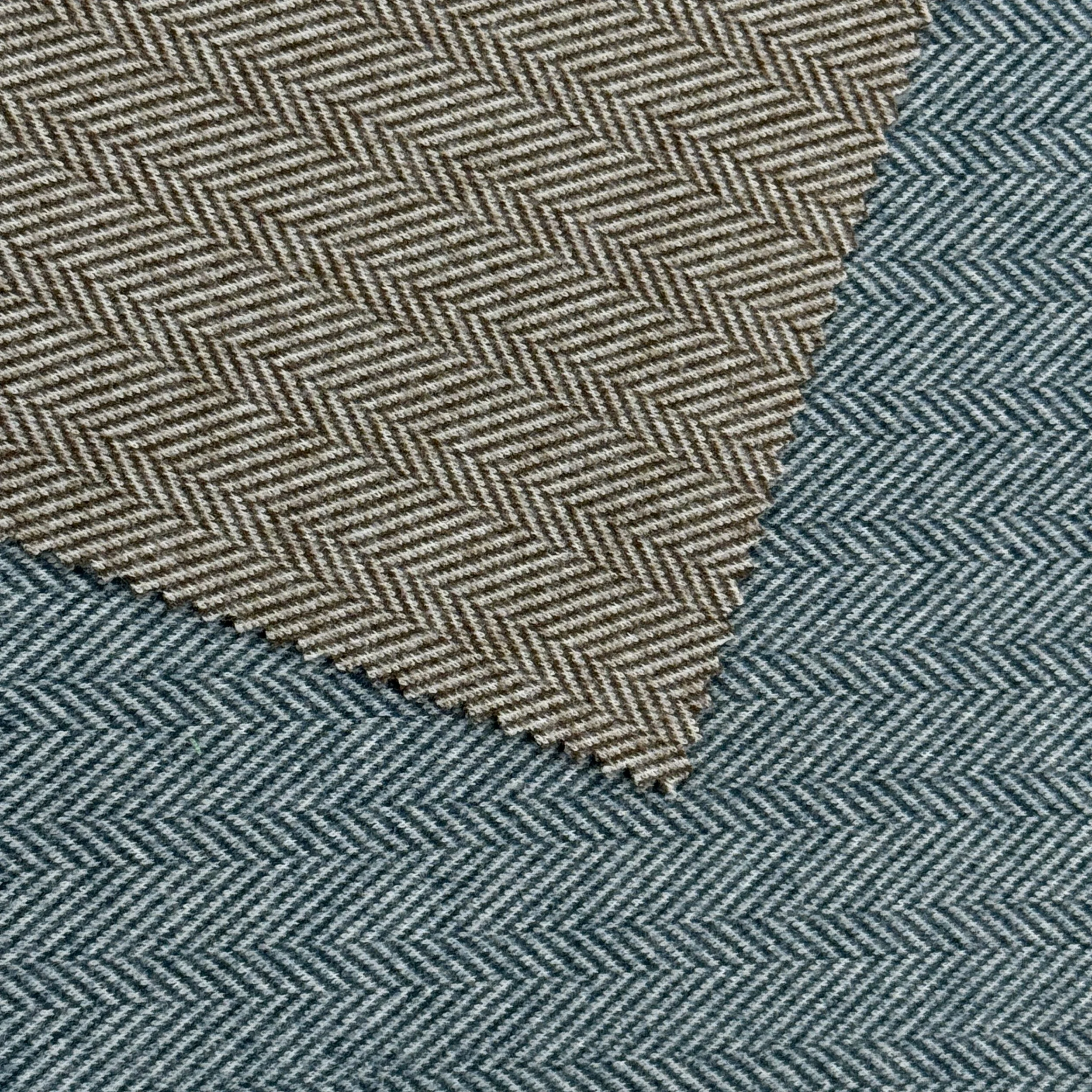 • Our herringbone wool knit fabric has a soft, slightly fuzzy texture and offering warmth and elasticity.